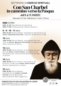 Nel silenzio raccolto del rione Ponte, a pochi passi da Piazza Navona, il Santuario di San Salvatore in Lauro si prepara a vivere una delle settimane spiritualmente più intense dell’anno. In vista della Pasqua, la comunità guidata da Monsignor Pietro Bongiovanni ha promosso una settimana di esercizi spirituali dedicata a San Charbel Makhlouf, figura amatissima del cattolicesimo contemporaneo, monaco maronita libanese venerato in tutto il mondo come santo dell’intercessione, della guarigione e della conversione interiore.